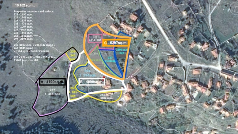 Three individual ~5,000 sq.m. plots, perfect for smaller projects or group ownership