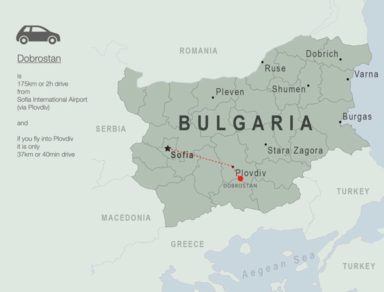 2 hours from Sofia Airport, 40 minutes from Plovdiv. Direct flights from 14 European cities.